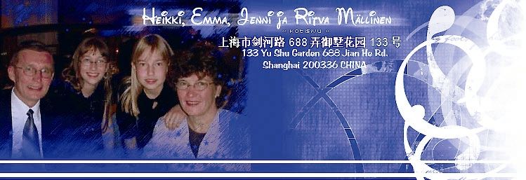 Osoitteemme: 133 Yu Shu Garden e-mail: mallinen@yahoo.com