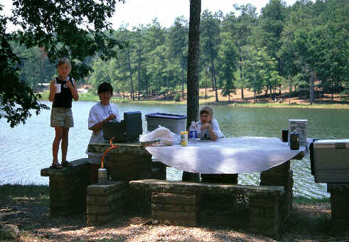 Valkohäntäpeuroja nähtiin taas paljon, picnicillä järven rannalla Missippin osavaltiossa.