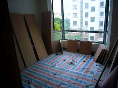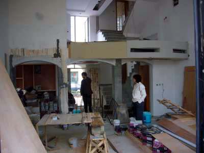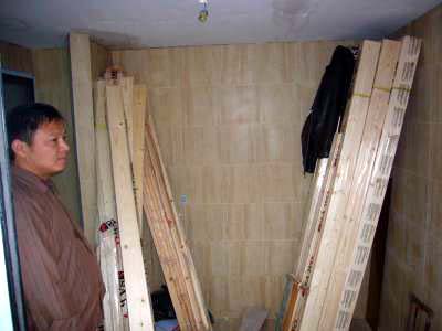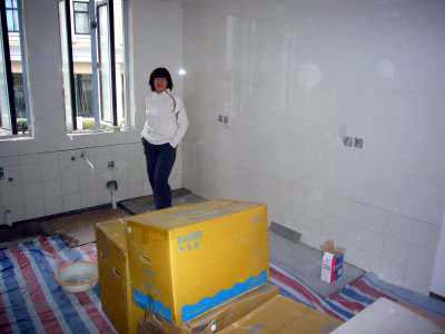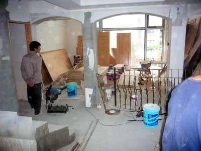 Yo kuvat olohuoneeesta ulko-oven suunnasta ja ulko-oven suuntaan. Kiinassa remontteja tehdään usein ja ne ovat
